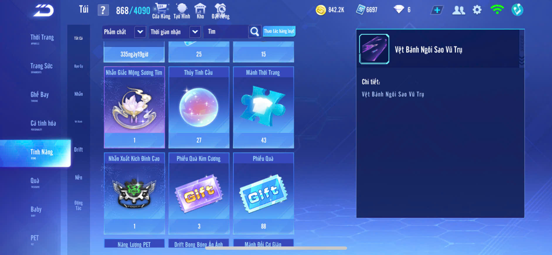 6MP NỮ,XE T1+T2 SKIN, S8+S9 SKIN,PÉT KIM CƯƠNG,GHẾ BAY,ĐỒ NỮ NHIỀU,ZING FULL TT..