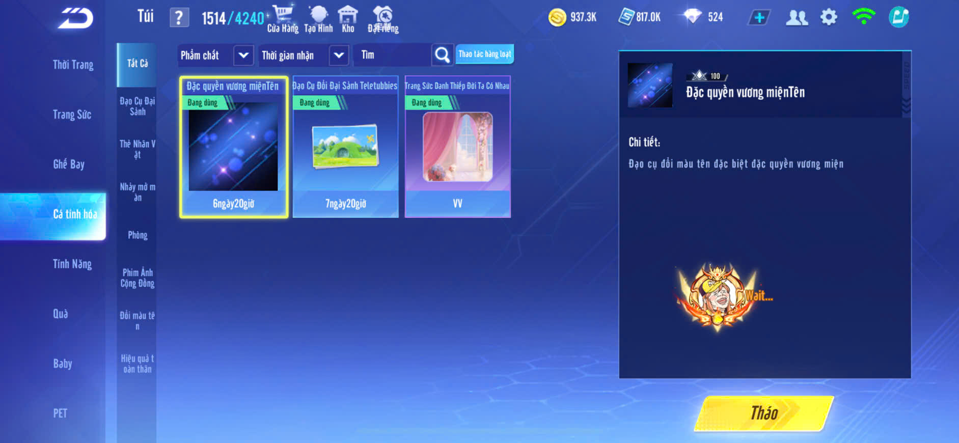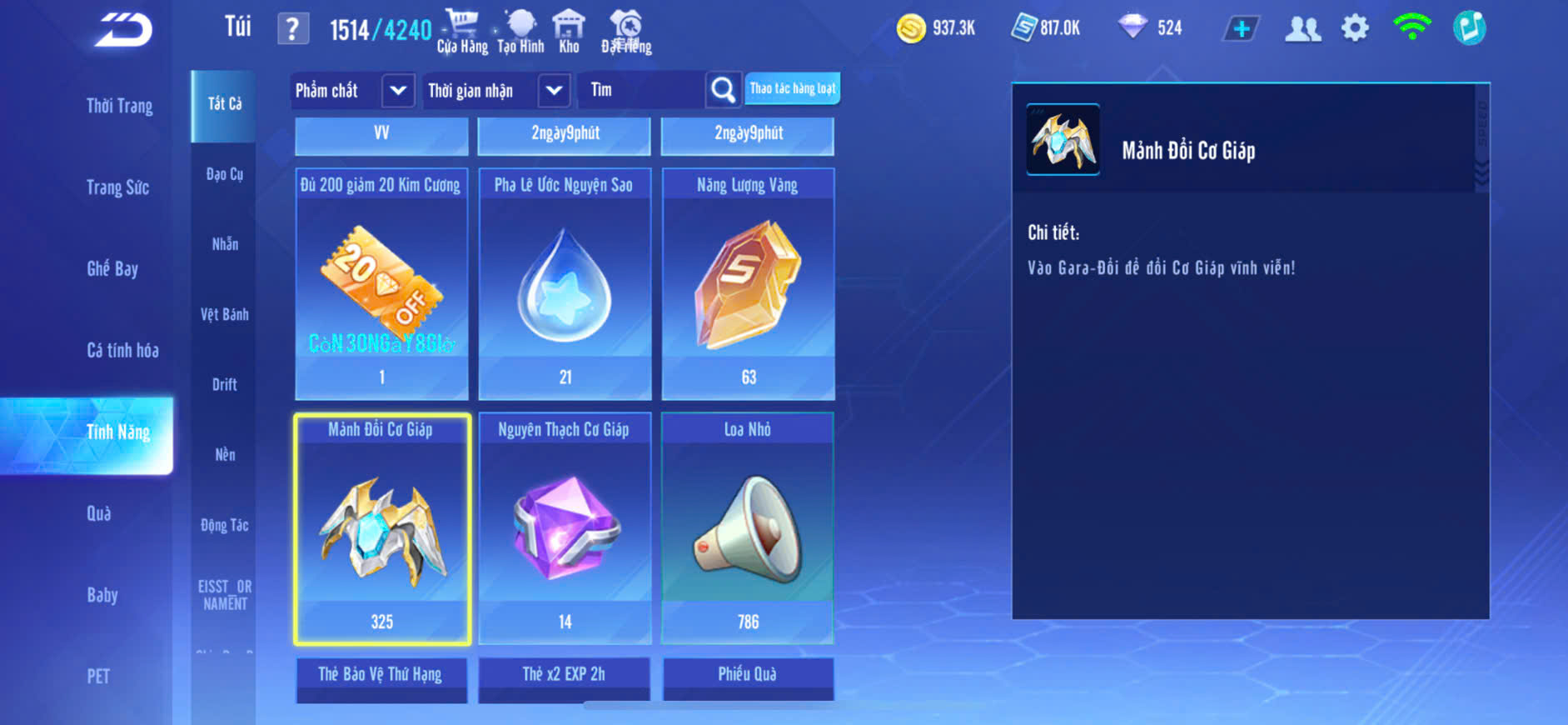 4MP NỮ,XE T1+S9+BĂNG SKIN,PÉT KIM CƯƠNG,GHẾ BAY ĐẸP,ĐỒ NỮ NHIỀU,ZING THAY FULL TT..