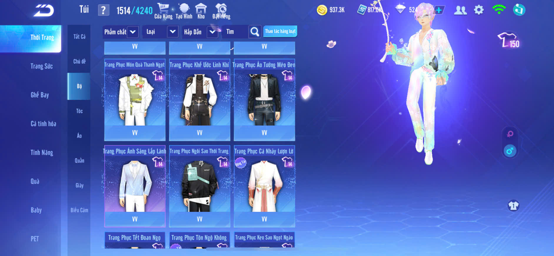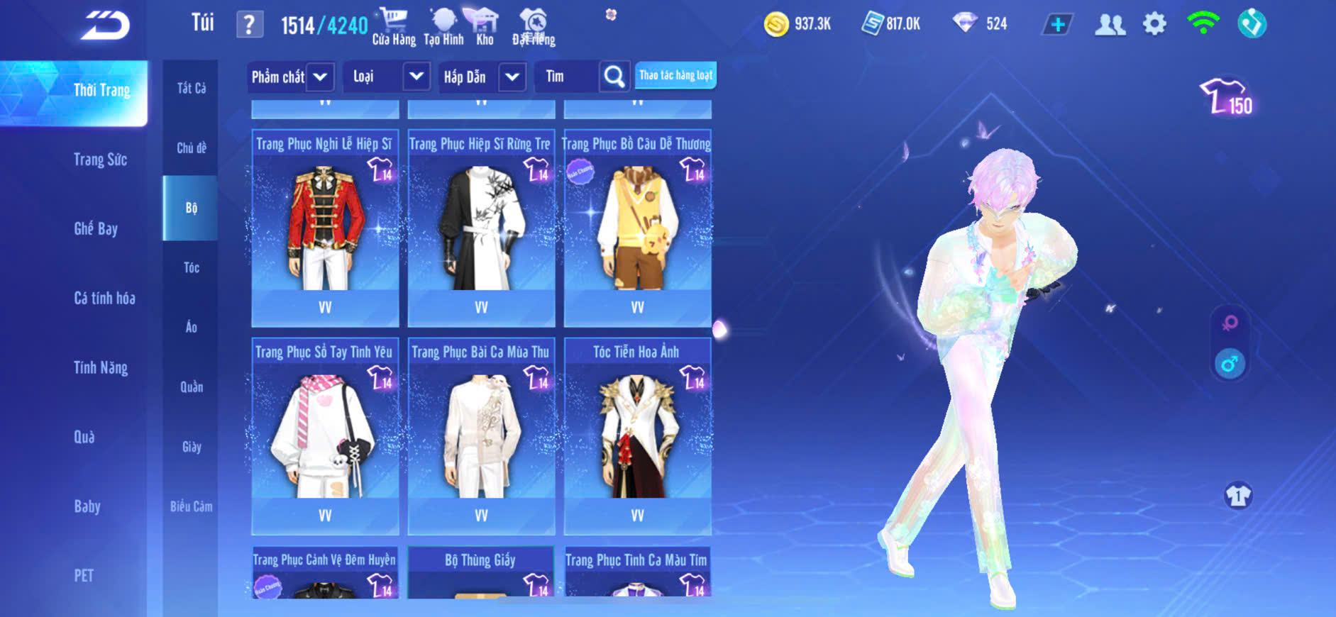 9MP NAM+4MP NỮ,XE T1 SKIN+S7 SKIN+S8 SKIN lv5+S9+S10 SKIN,PÉT CƯỠI,GHẾ BAY NHIỀU,ĐỒ NAM NHIỀU,ZING THAY FULL TT..