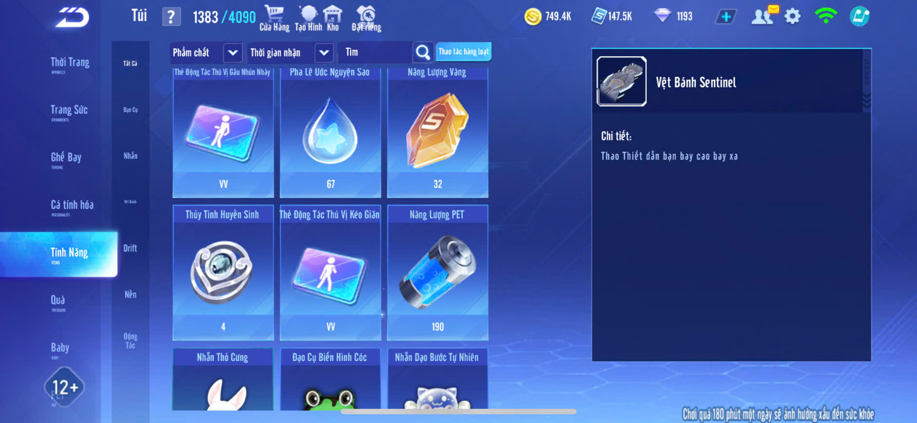 3MP NỮ+2MP NAM,XE T1+BĂNG PHÁCH SKIN,PÉT CƯỠI,PÉT KIM CƯƠNG,GHẾ BAY, ĐỒ NHIỀU,ZING THAY FULL TT..