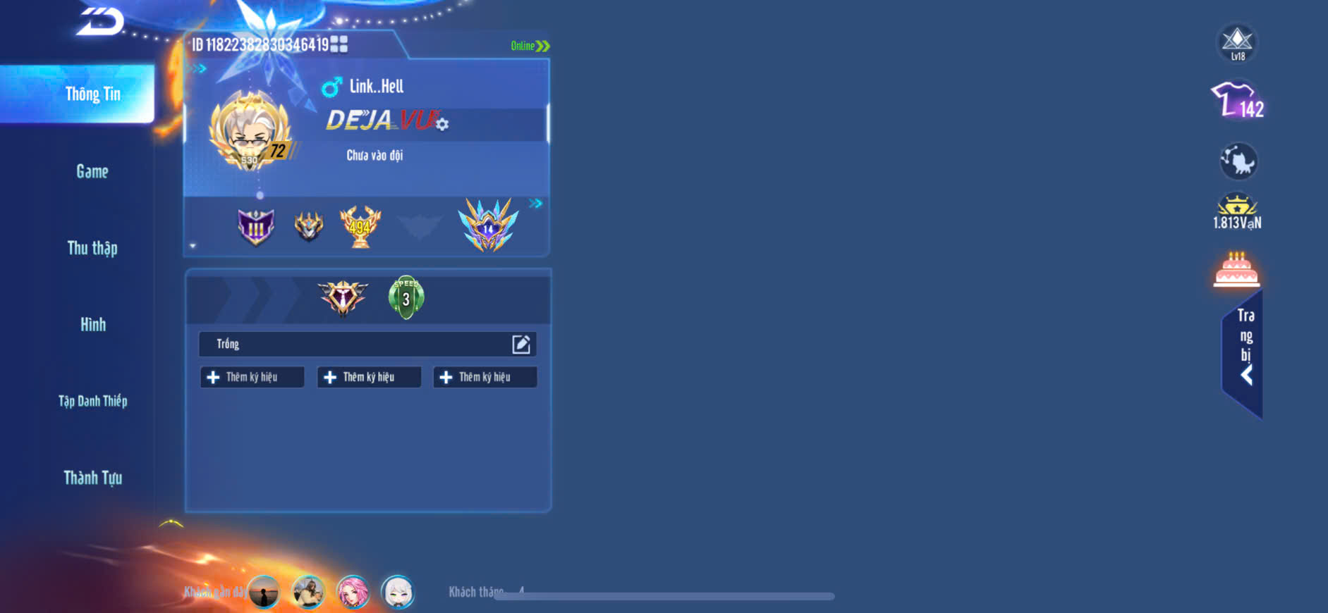 Hình ảnh chi tiết của tài khoản