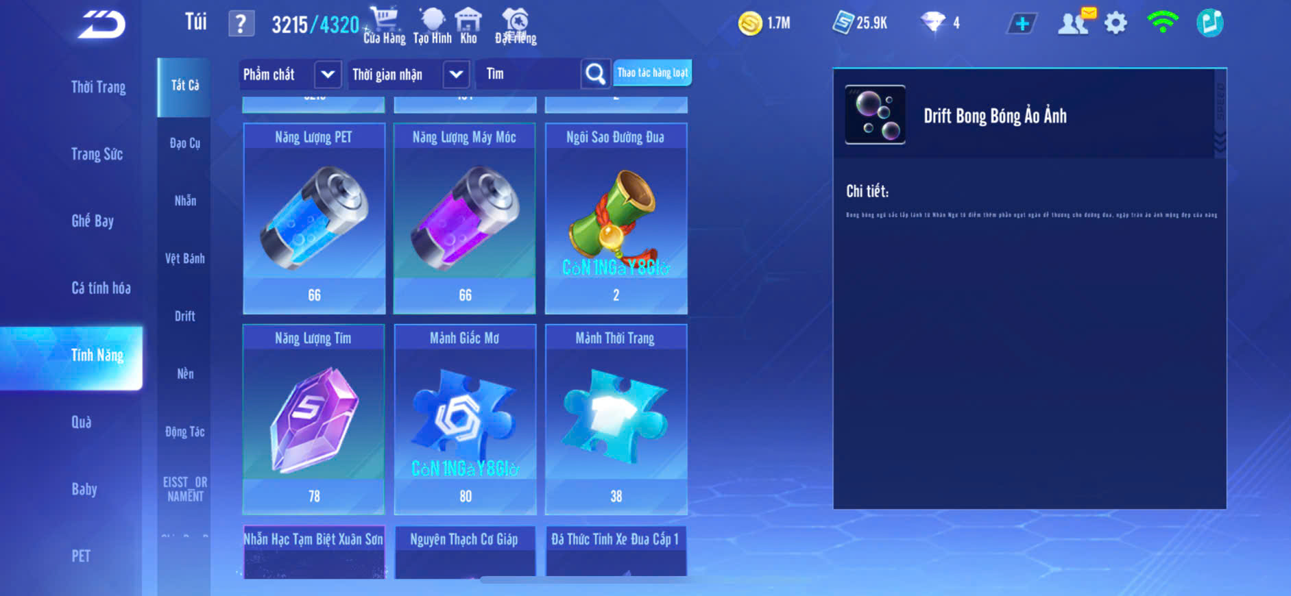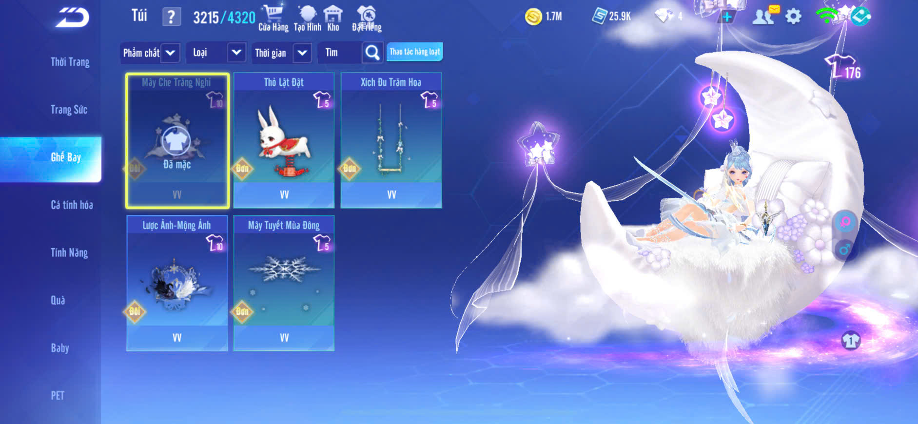 1 ẢO SINH+3 MP NỮ,XE T1+S9,NHIỀU XE A XỊN+SKIN,PÉT KIM CƯƠNG+GHẾ BAY XỊN,ĐỒ NỮ NHIỀU,ZING THAY FULL TT