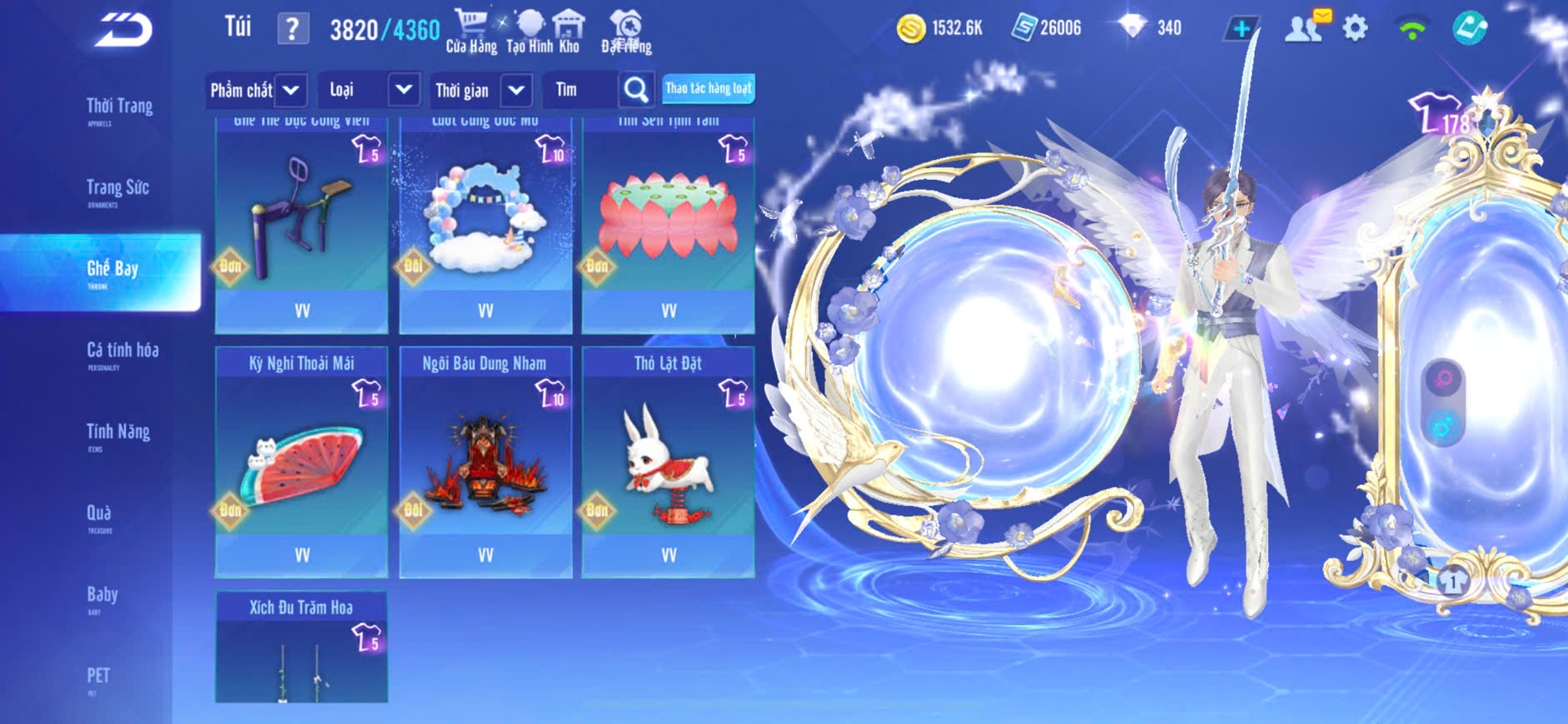1 ẢO SINH NAm,XE T1+S7+S8+S9+S12+S13+S14 VÀI SKIN,PÉT KIM CƯƠNG,GHẾ BAY NHIỀU,ĐỒ NHIỀU,ZING THAY FULL TT