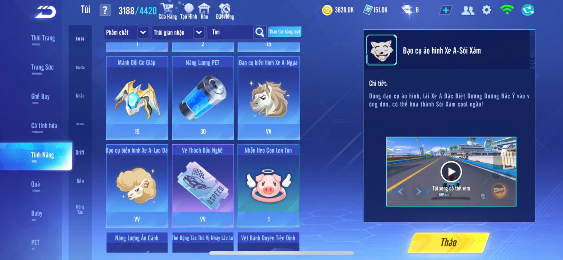 1 ẢO SINH NAM,XE T1+T2+T3+S7+S8+S10+S12 VÀI SKIN,PÉT CƯỠI,GHẾ BAY ĐẸP,ĐỒ NAM NHIỀU,ZING THAY FULL TT..