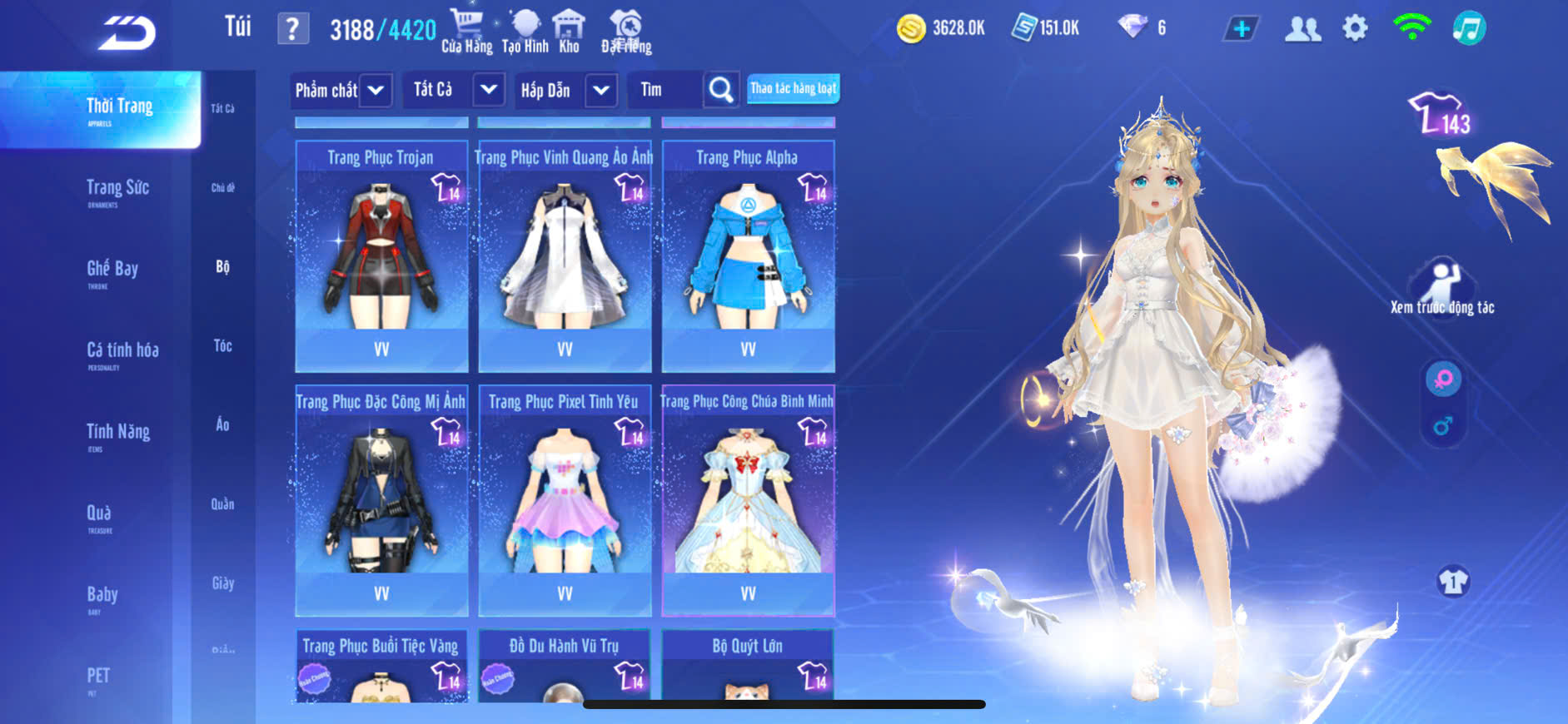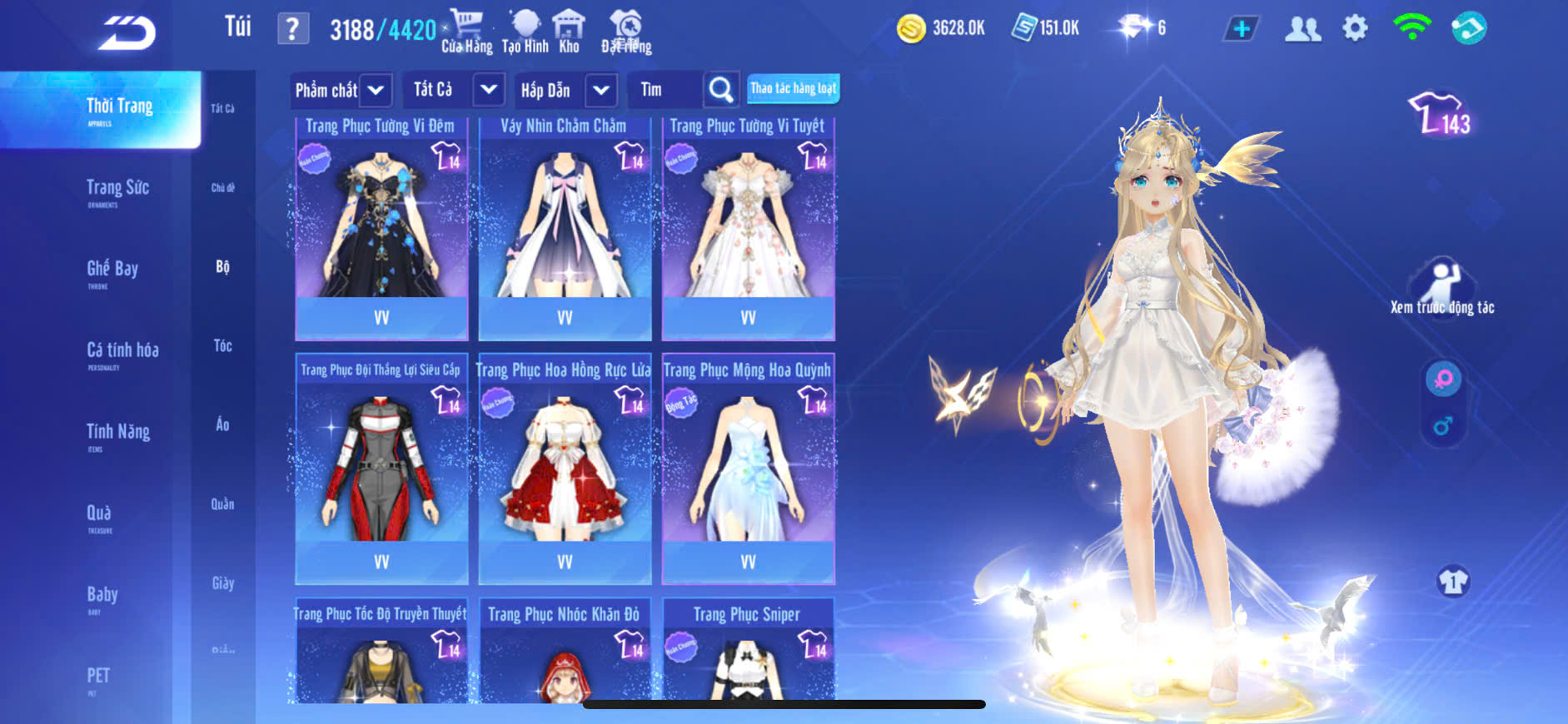 6MP NỮ,XE T1+T2 SKIN, S8+S9 SKIN,PÉT KIM CƯƠNG,GHẾ BAY,ĐỒ NỮ NHIỀU,ZING FULL TT