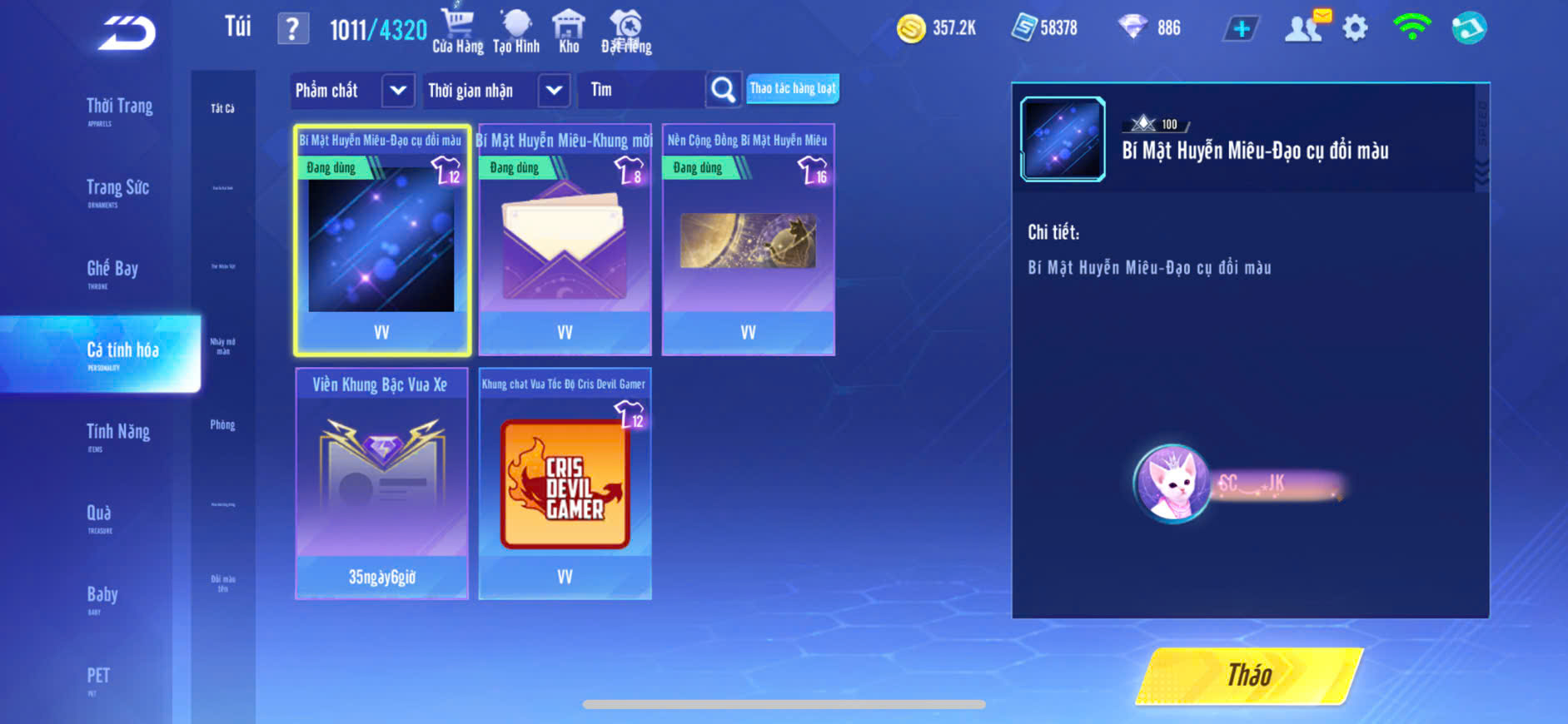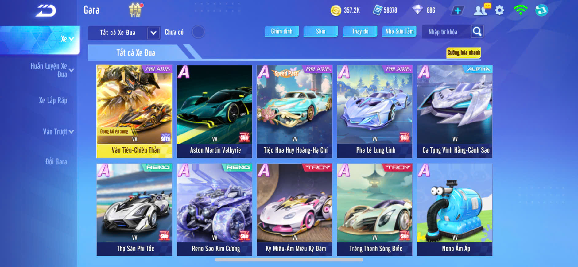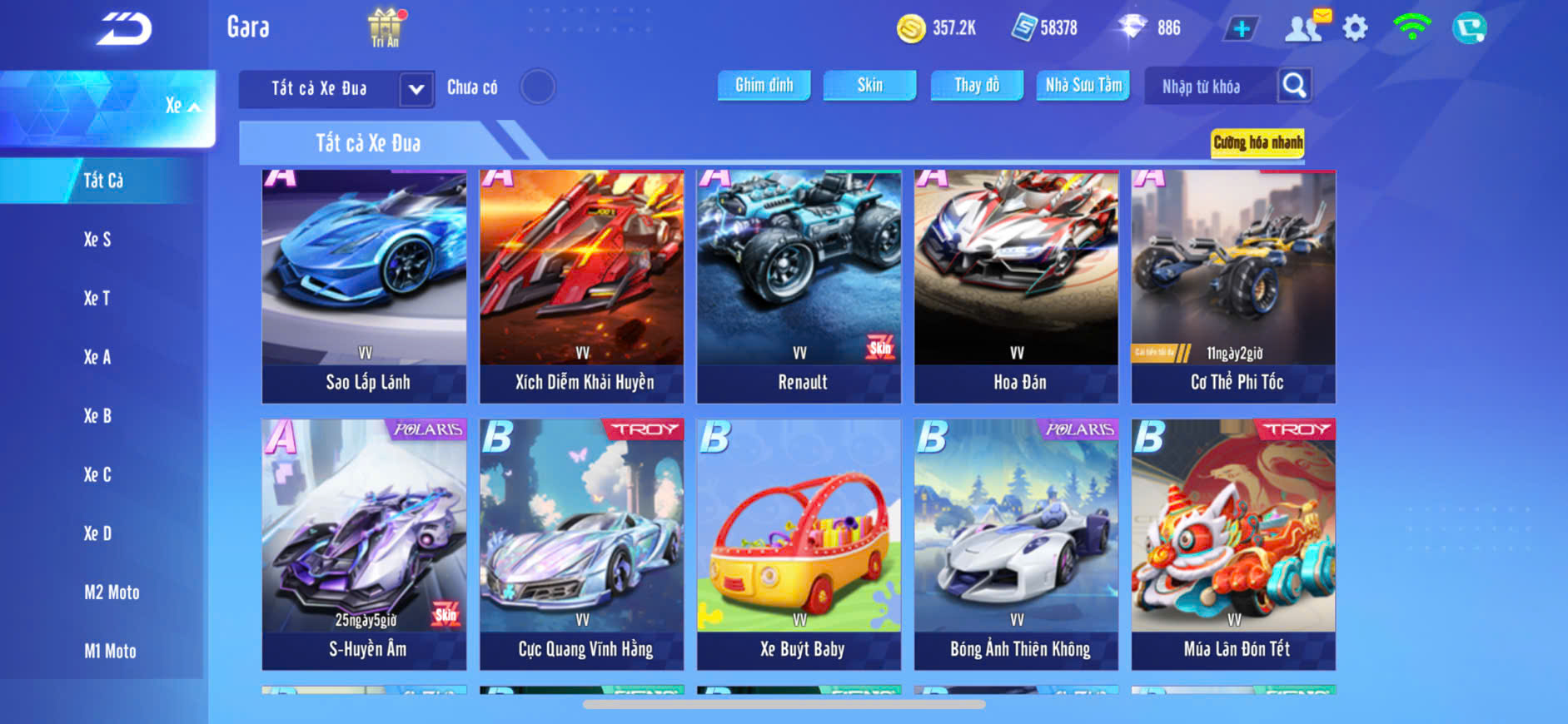 XE S13 HUYỄN TINH SKIN+S10 SỨ GIẢ 2 SKIN+S14 ĐÌNH QUANG,PÉT KIM CƯƠNG,ZING THAY FULL TT..