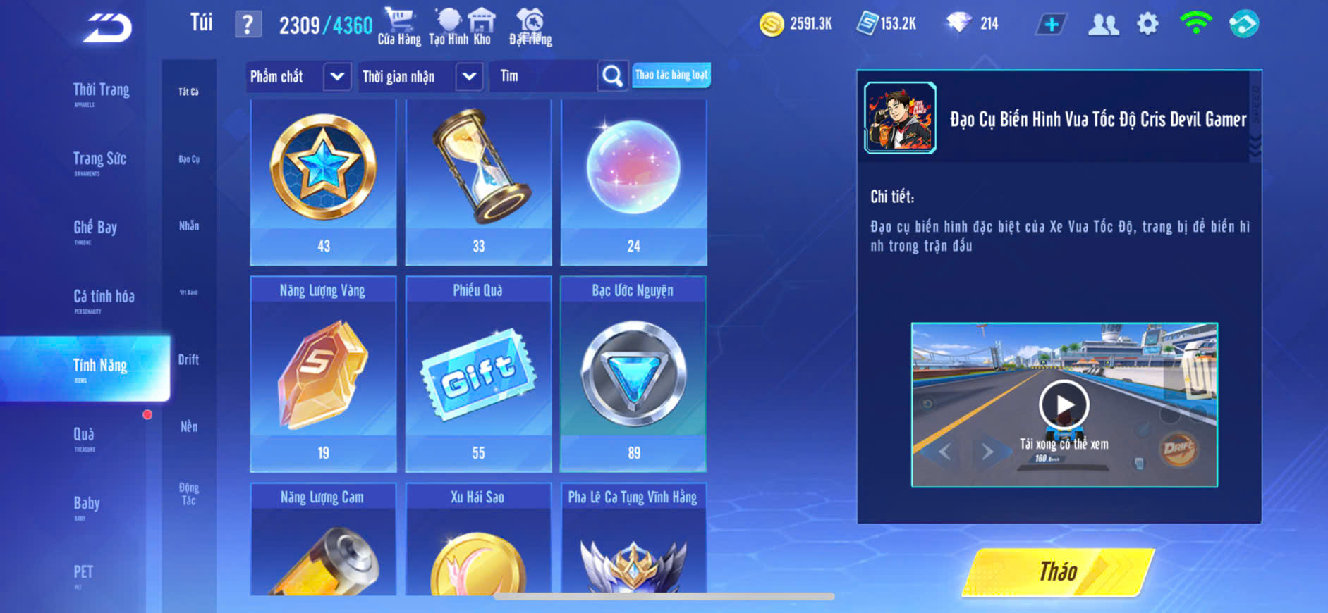 S14 ĐÌNH QUANG SKIN+S9 SKIN,PÉT KIM CƯƠNG,ĐỒ NAM NHIỀU,GHẾ BAY,ZING THAY FULL TT..