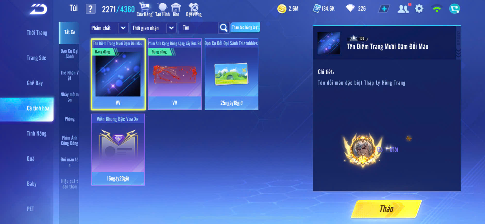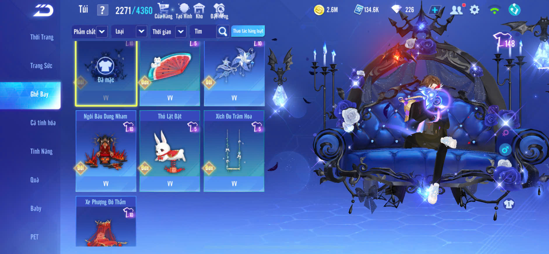 4MP NAM,T1 SKIN+T2 SKIN+BĂNG PHÁCH THIÊN SỨ LV5+S9 SKIN+S10 SKIN,PÉT CƯỠI 2 CON,GHẾ BAY,ZING THAY FULL TT..